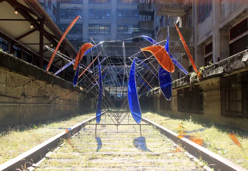 Cohen and Zapata incorporated Wightman Park’s water and pollinator conservancy initiatives while also considering the history of the site as a glass manufacturing plant. The four large-scale sculptures of this installation are inspired by a waterfall, a bee hive, and pollinator insects. The works, titled Cascade (the bench), Transform, Pollinate, and Illuminate (the bugs), use a zero-waste model that incorporates laser cut stainless steel to reflect the park’s nature and new storm water run-off design.